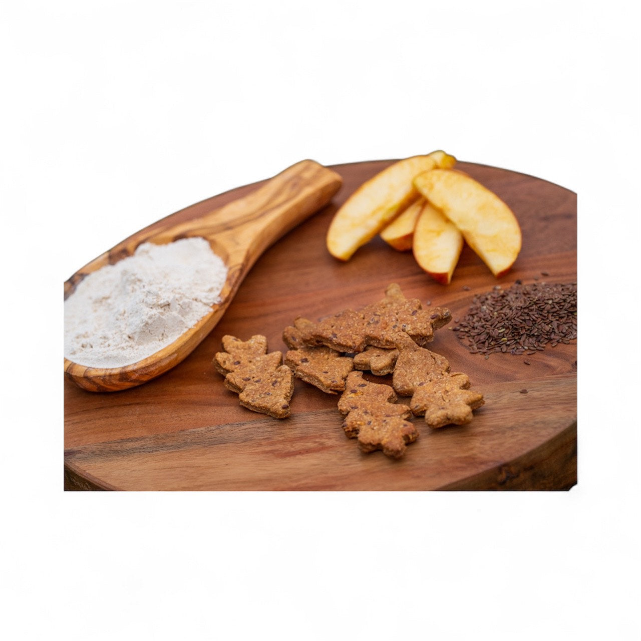 Apples are known as the benadryl for dogs! Great for allergies, and flax seeds are added for digestion support.